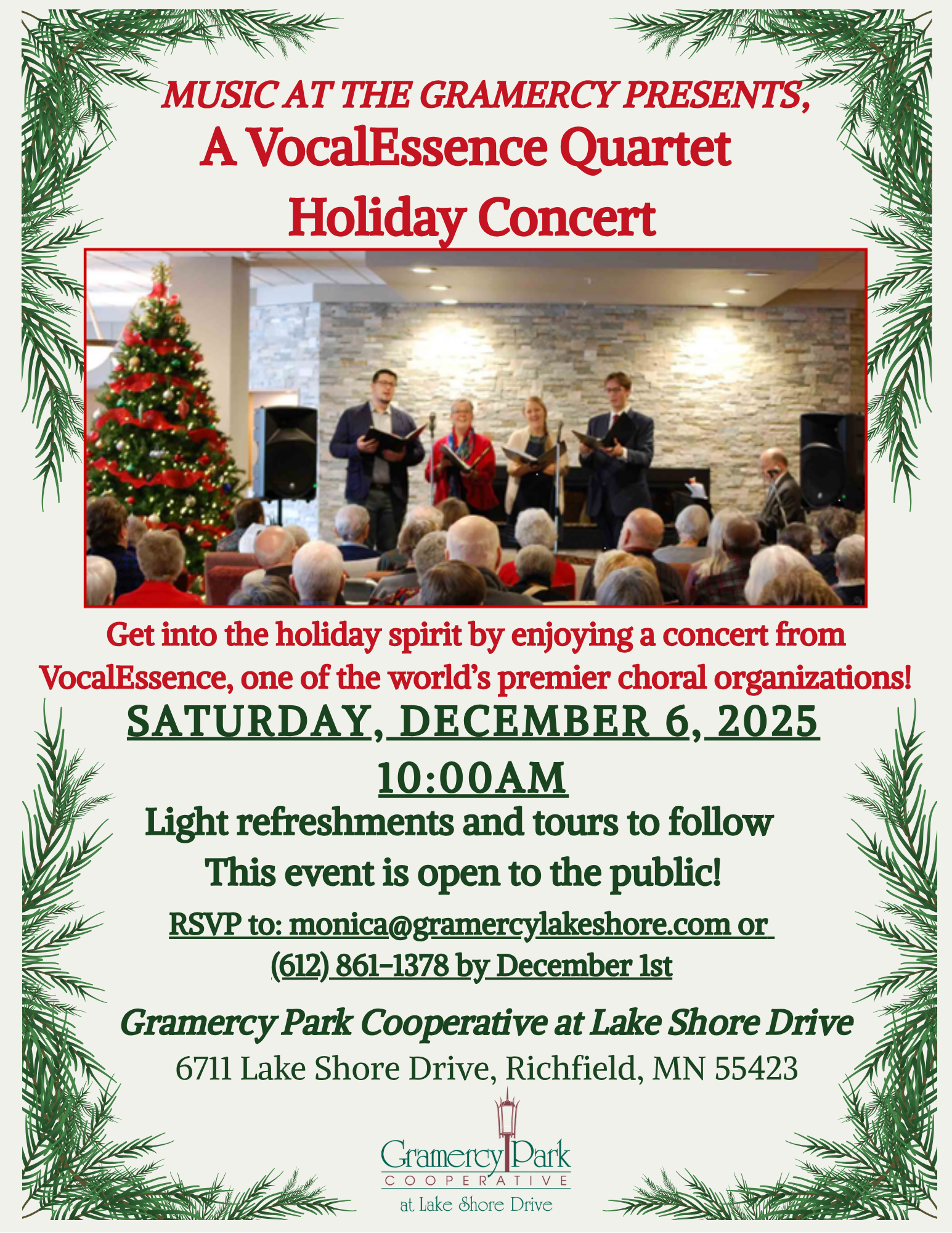 - Music at the Gramercy - December 6 - Music at 10:00AM, tours to follow at 11:00AM